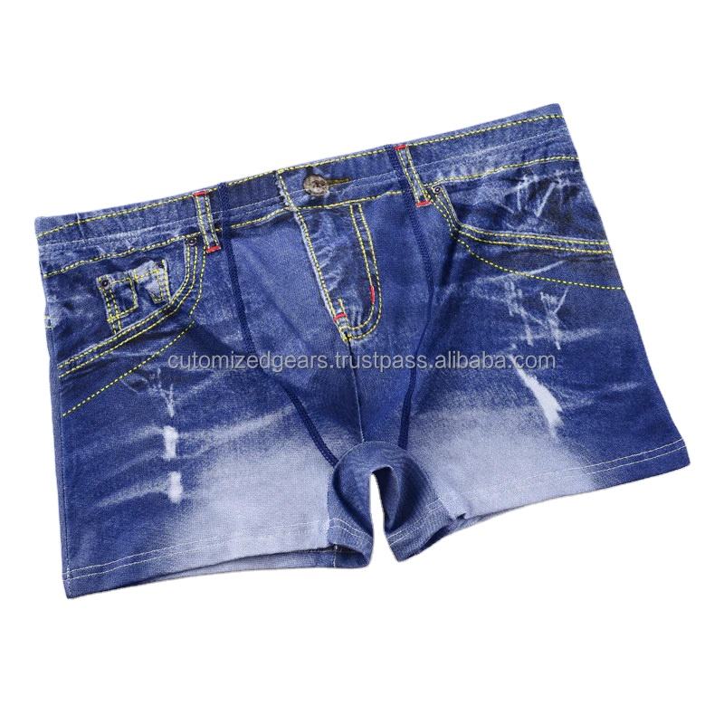 Top Brand Men Denim Underwear 3D Sexy Jeans Print Shorts Fashion Cowboy Style Underpants Trunks Mens Denim Shorts