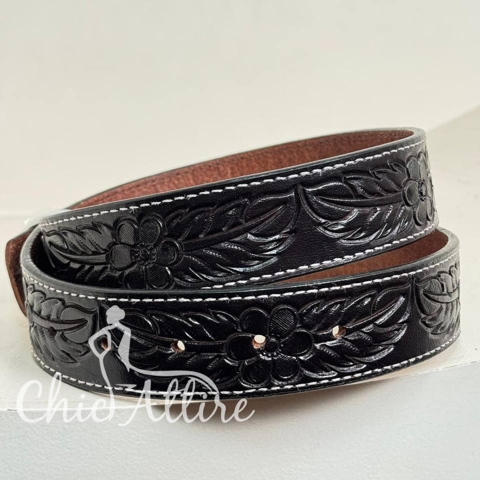Top Brand Professional Genuine Hand Tooled Leather Heavy Duty Without Buckle Belt Cowboy Strap Screw-On Belt Straps for Unisex