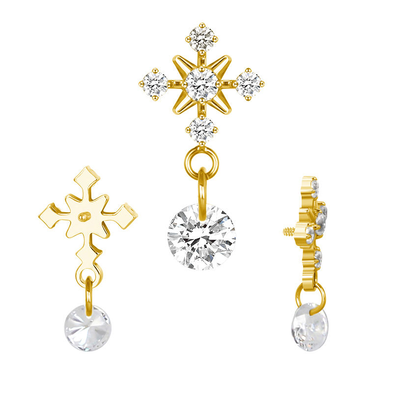 Top Children's Punk ASTM F136 Titanium Moon Body Jewelry 3 Rectangle Internally Threaded Asscher Cut Zircon Main Wedding Claw