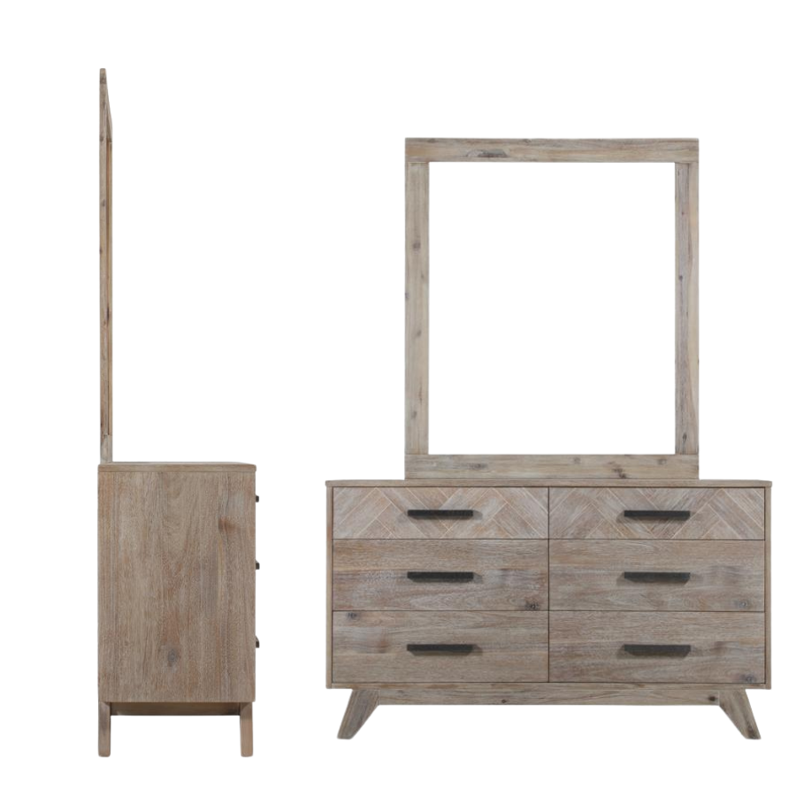 Top Choice Wooden Dresser 6 Drawers and Frame Mirror Acacia Solid Wood Bedroom Furniture Oem Service Made in Vietnam