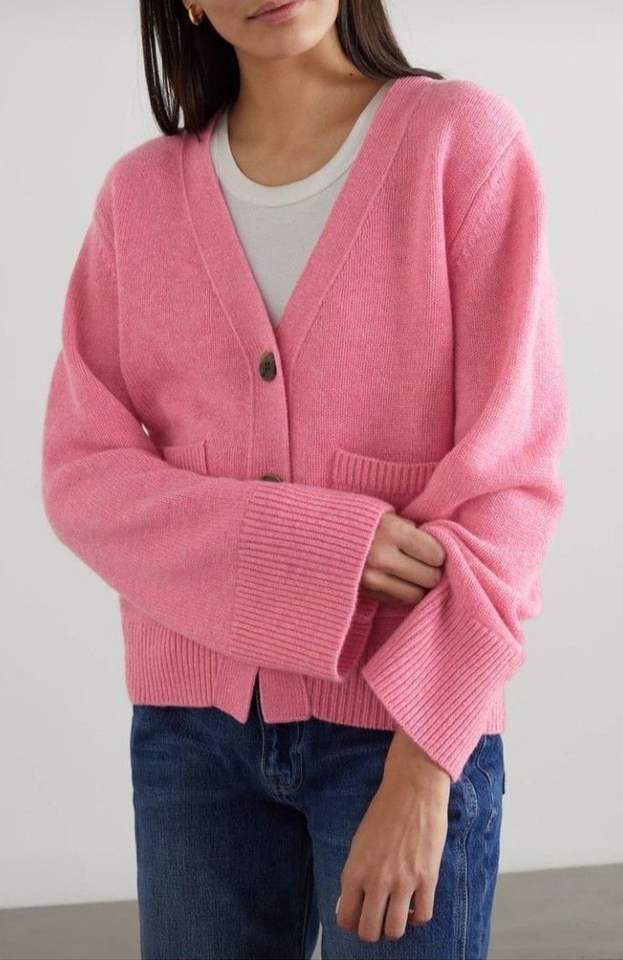 Top Class European Fashionable Women V Neck Twist Button 100% Acrylic Jacquard Long Sleeve Pink Slim Crop Top Knitted Cardigan