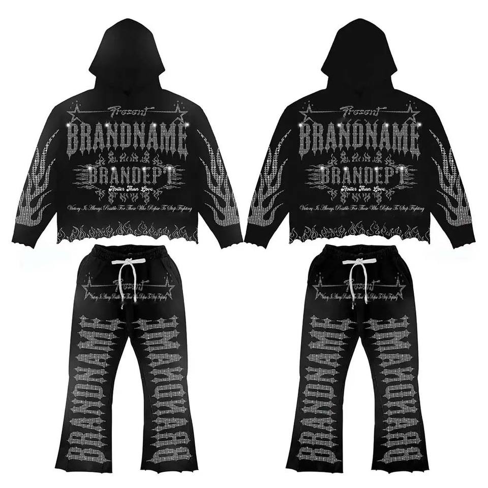 Top Clothing Manufacturers Custom Flared Pants Vintage Acid Wash Sun Faded Full Stones 100% Cotton Jogging Tracksuits for Unisex