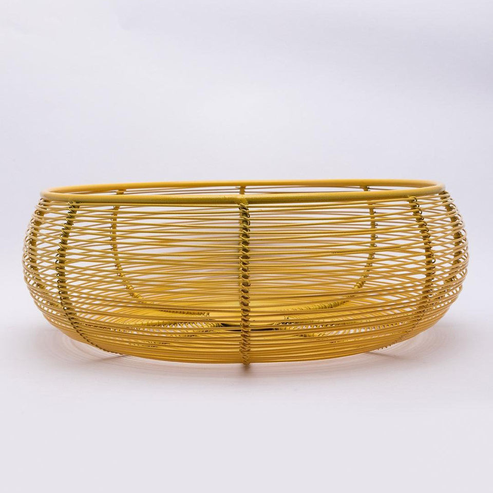 Top Creative Design Round Gold Plated Iron Wire Fruit Basket Round Shape Storage Basket Custom Size Kitchen Utensil Holder Deco
