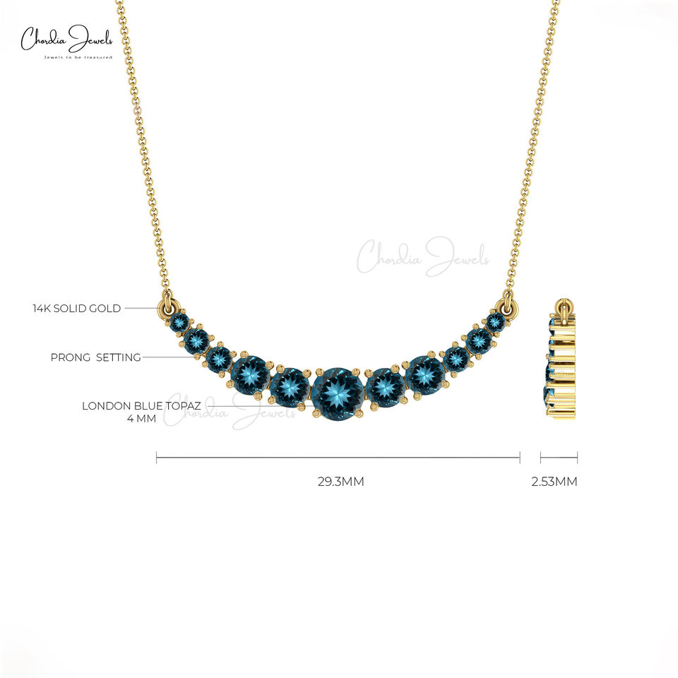 Top Deal Natural London Blue Topaz Solid 14k Gold Necklace 0.3 CT Round Gemstone Prong Set Necklace Direct Wholesale Suppliers