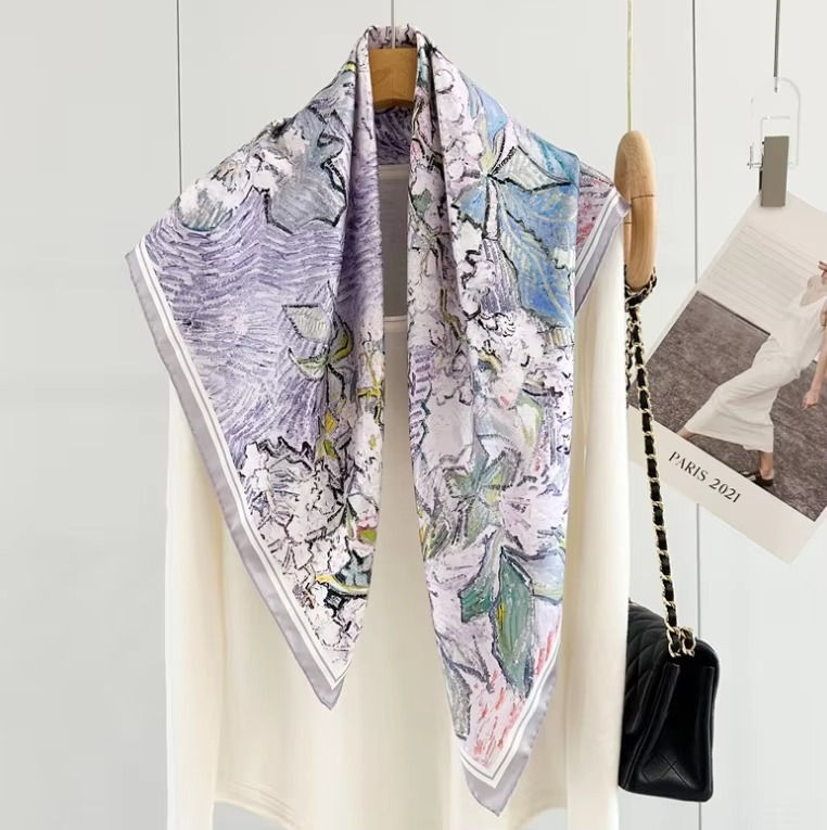 Top Deals Custom Logo Design Square Designer Pure Silk Scarf Printed 90*90cm Double Sided Printed Twill Scarf Silk Bandana