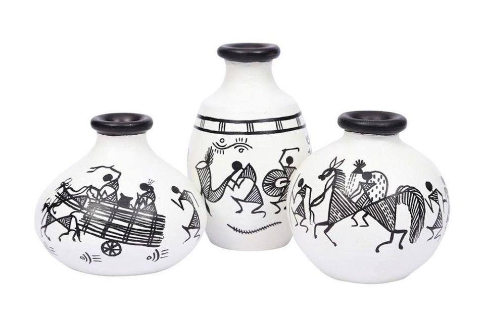 Top Demanded Handcrafted Warli Hand-Painted Modern Terracotta Pots for Plants Wedding Home Decor Lightweight Eco-Friendly