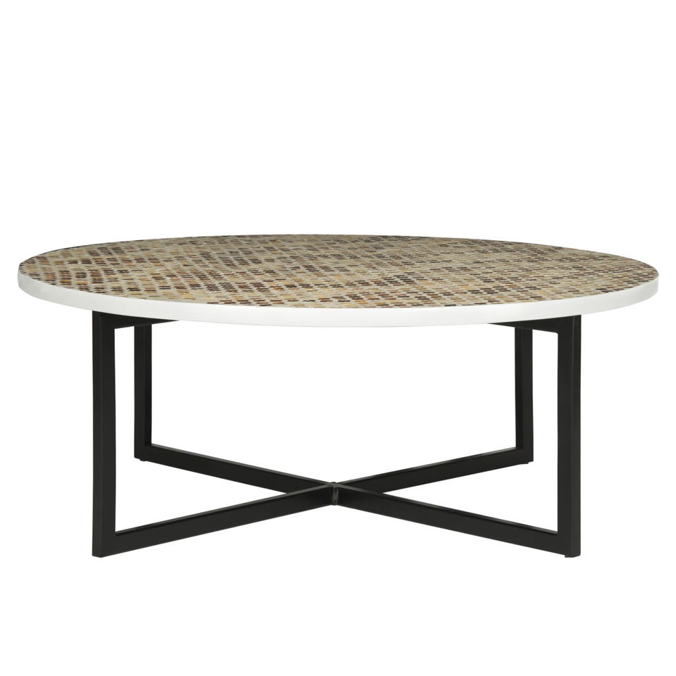 Top Design Creative Seashell Coffee Tables Living Room Furniture Mother of Pearl Inlaid Top and Metal Stand Tables