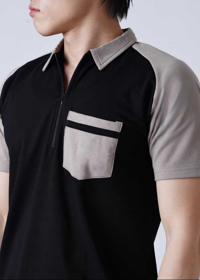 Top Design Men Color block Polo Shirt & Pants Set Black-Beige Contrast Design Casual Two-Piece Outfit Manufactured Tracksuit