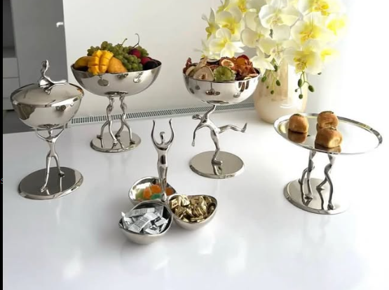 Top Design Silver And Gold Tier Stands Cake Stands Cake Domes Cooke Stands Bowls Trays and Dishes Boarder With Floral Pattern