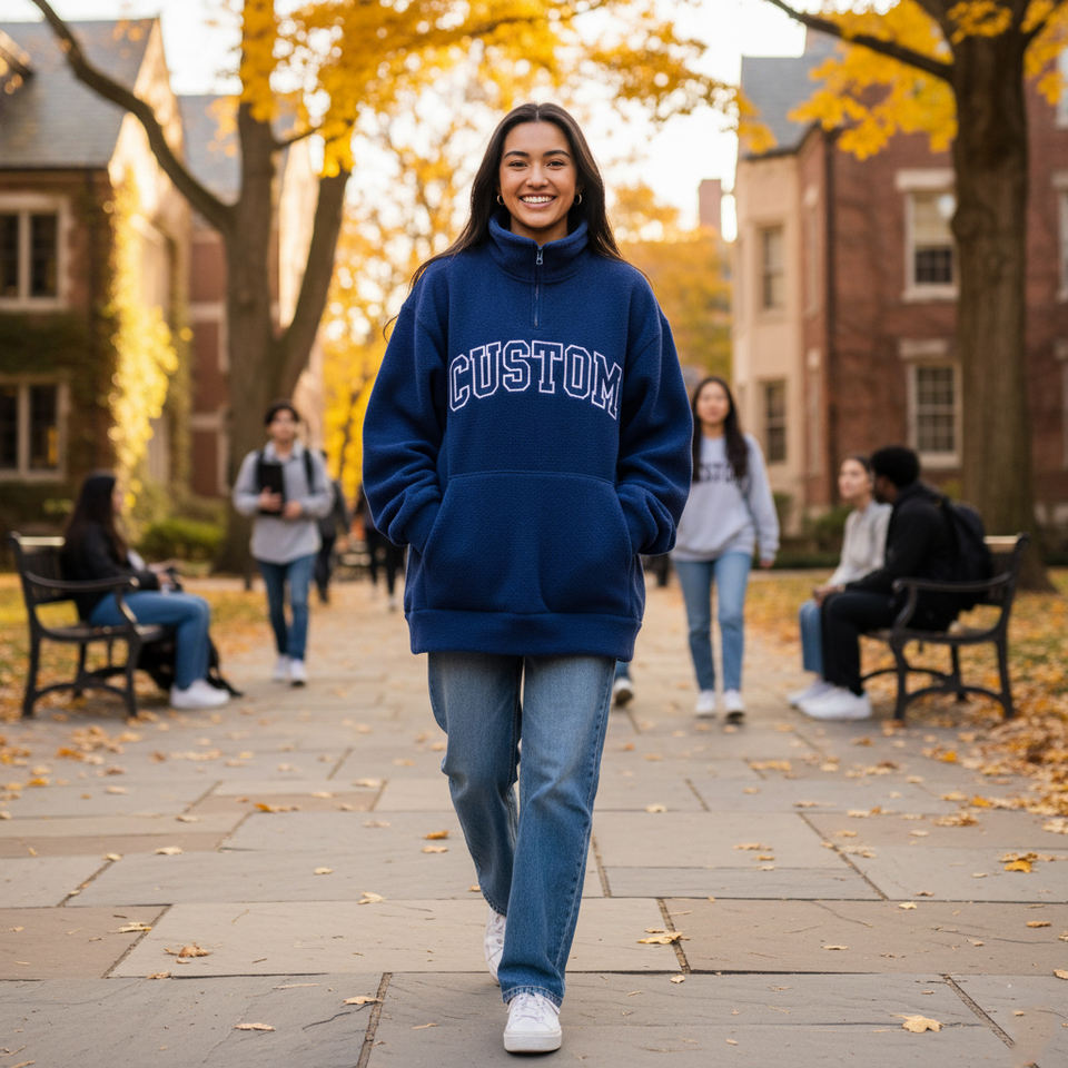 Top Design Women's Lined Half Zipper Oversized Crew Neck Long Sleeve Knitted Fabric Casual Winter Sweatshirt with Badge Sequined