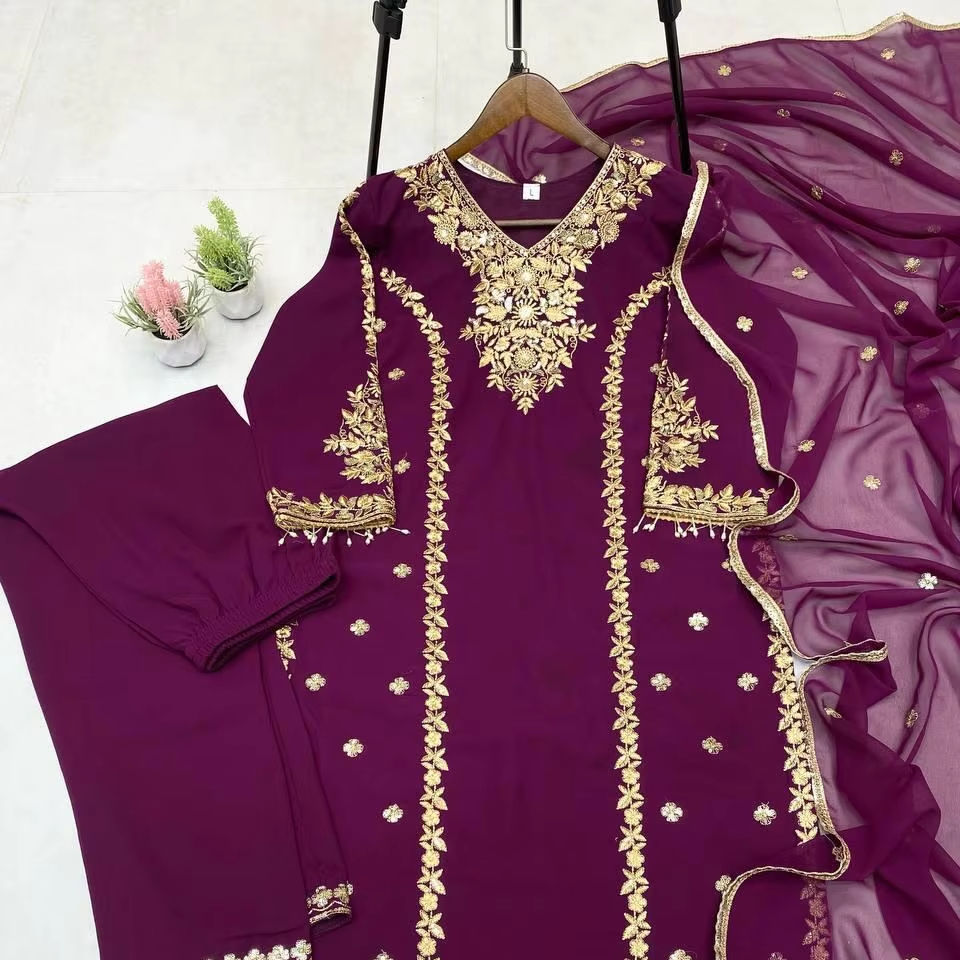 Product Name:Georgette Sequence Embroidery Top & Pant With Dupatta