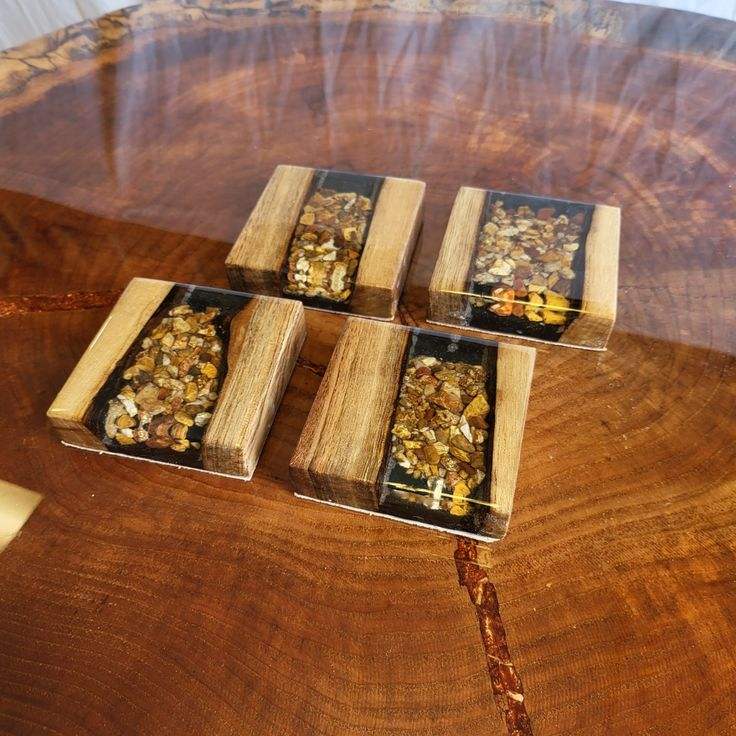 Top Export Quality 10*10*1cm Wood Epoxy Resin Coasters Drink Tea Coffee Holes Free Wooden Reusable Engraving Custom Size Cheap