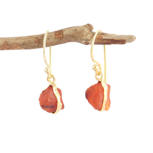 Top Fashion Jewelry Natural Raw Carnelian Hanging Drop Dangle Earrings 24K Gold Plated Ear Wire Hook Earrings Present for Woman
