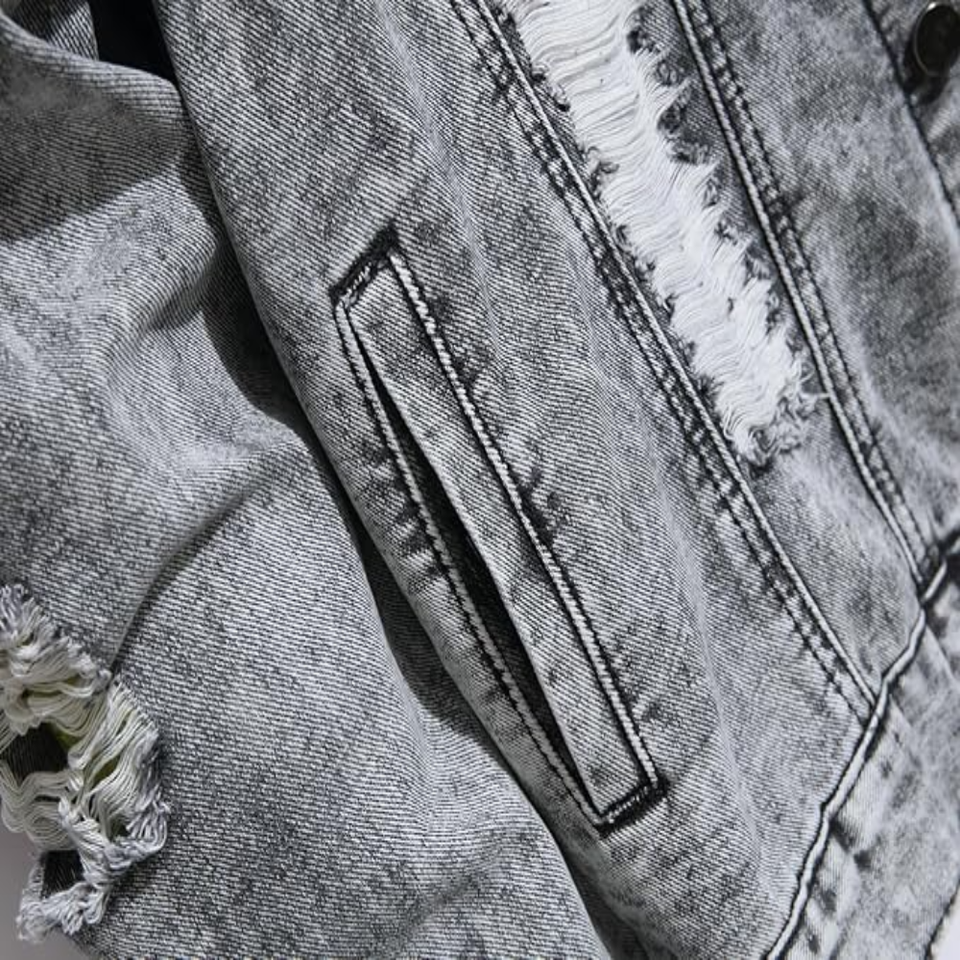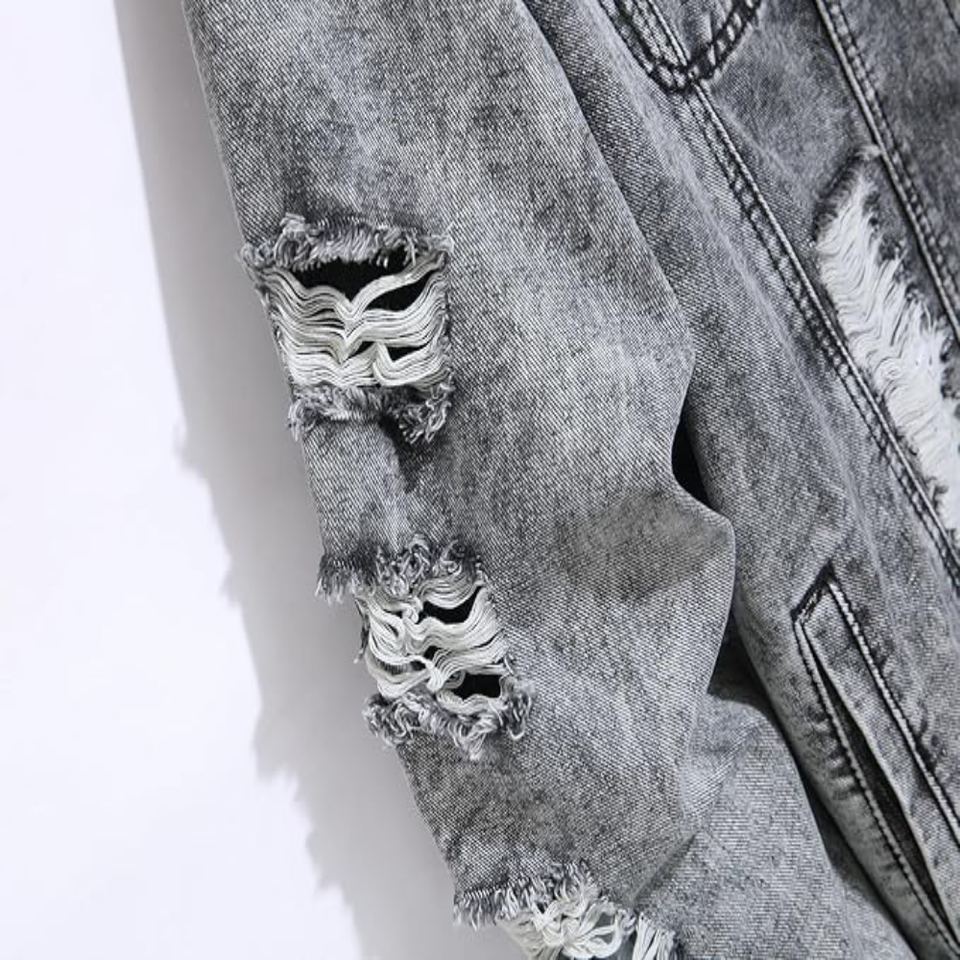 Top Fashion Men's Distressed Ripped Slim Fit Classic Casual Denim Trucker Jacket 100% Cotton for Winter