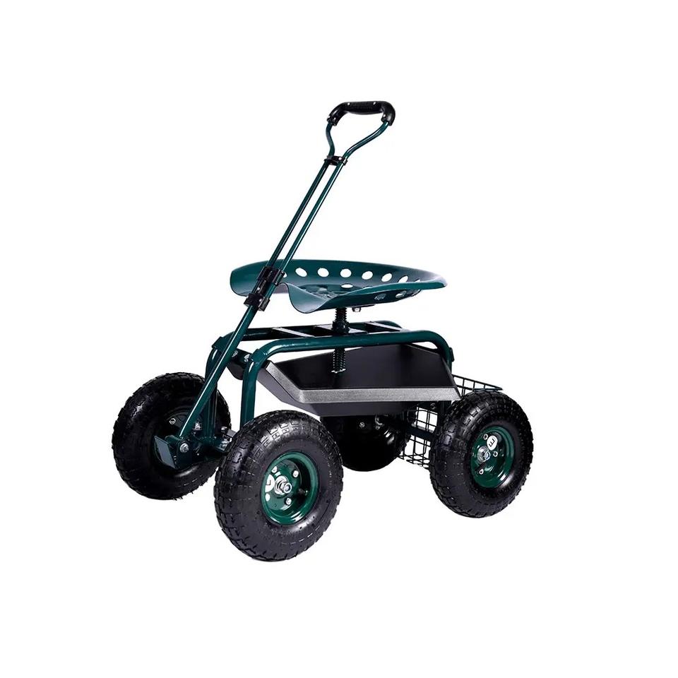 Top Garden Cart Rolling Workseat with Wheels, Gardening Stool for Planting, Wagon Scooter with Steering Hand, Utility Tool Tray