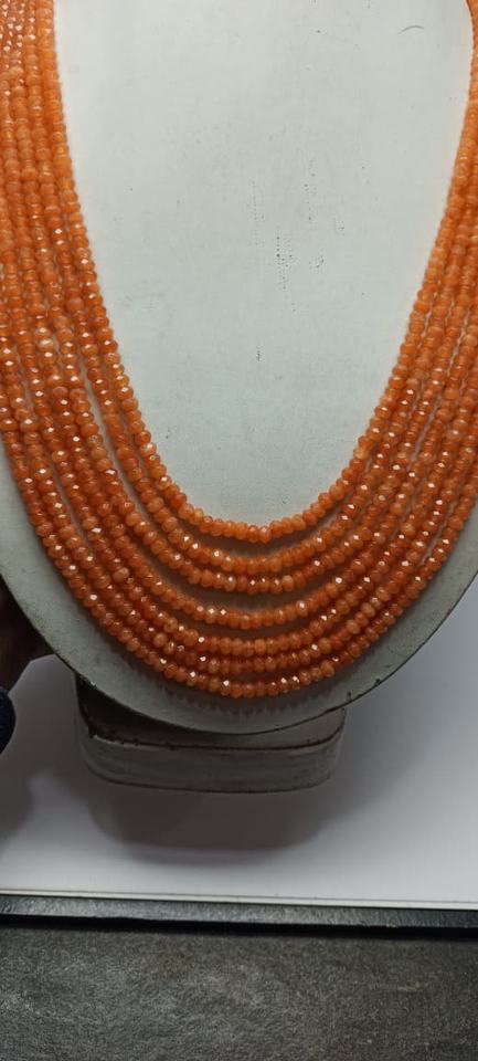 Top Grade High Quality Natural Orange Jade 4mm Faceted Rondelle Gemstone Beads Necklace Rich Color M.Y.GEMS Brand Made India