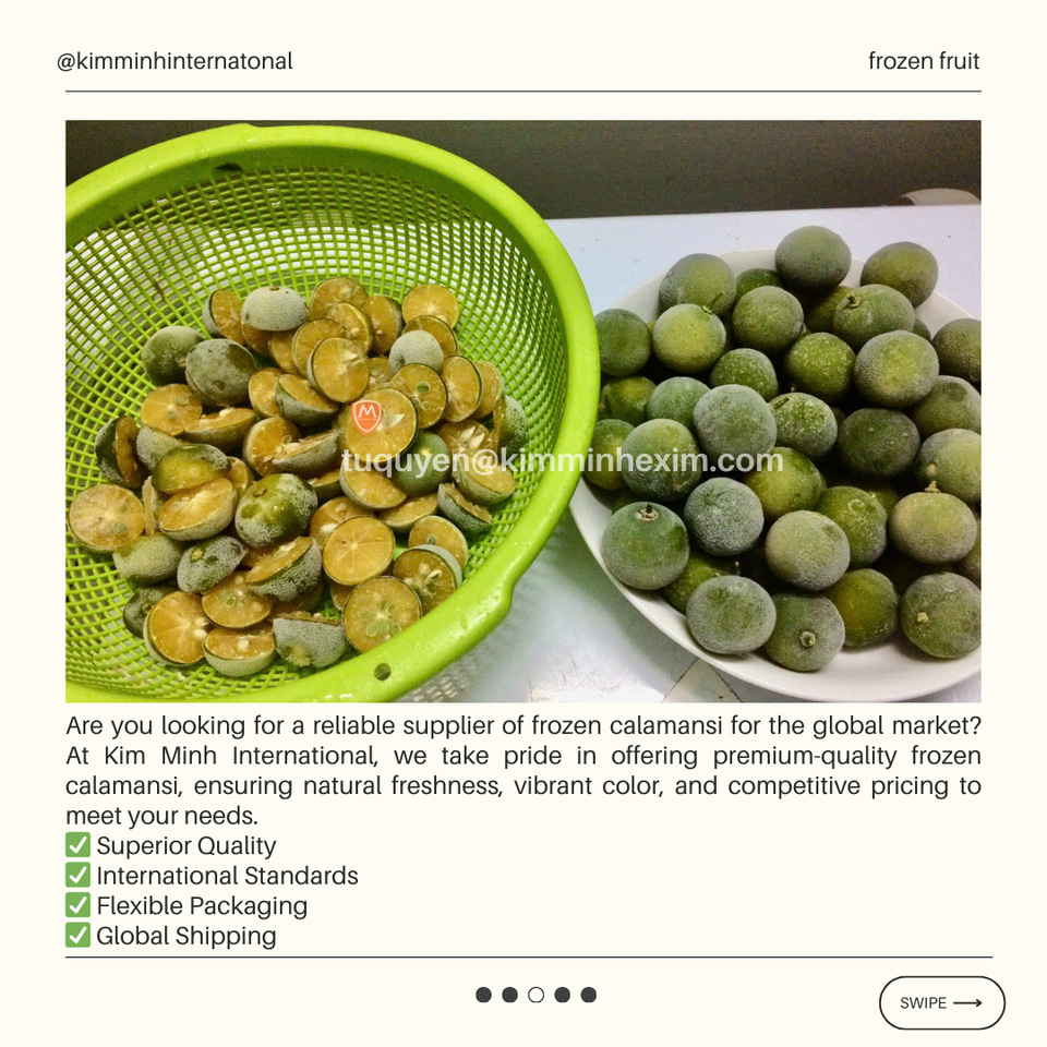 Top Grade IQF Frozen Calamansi Lime From Vietnam Brix 10+ -18C Storage Vacuum Pack Bulk Supply for Export by KMI