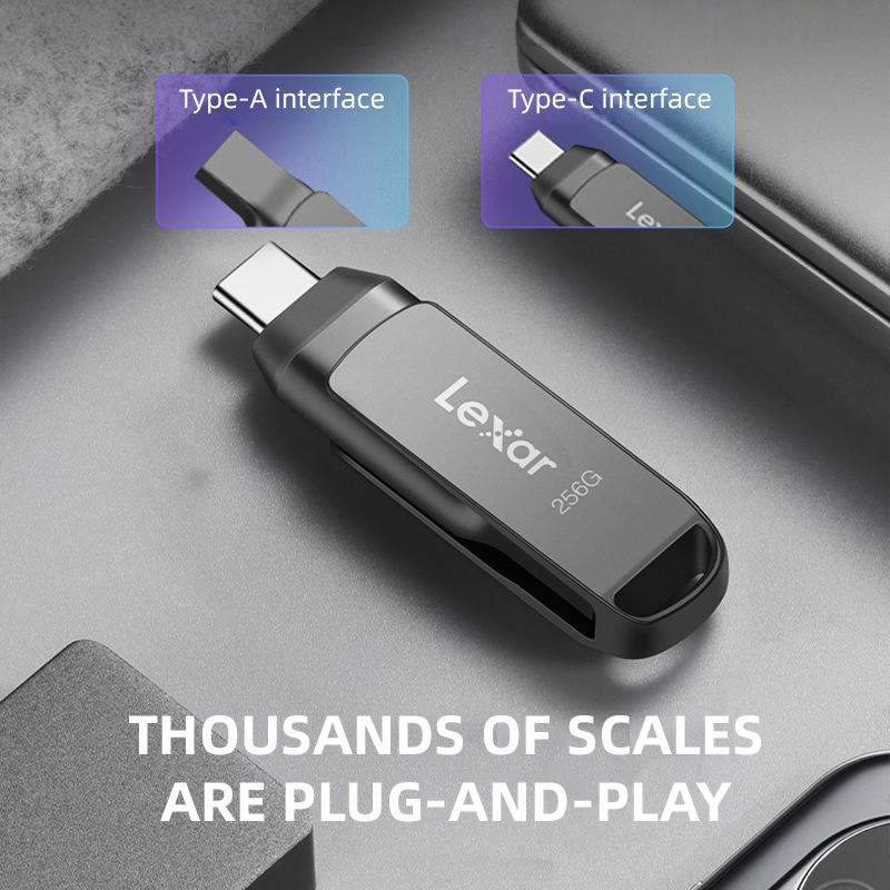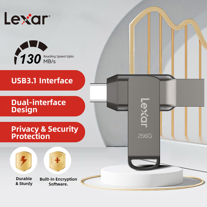 Top-Grade Lexar D400 Pen Drive, Dual-Port USB 3.2 Dual-Interface Reliable Fast Metal Storage Drive for Android