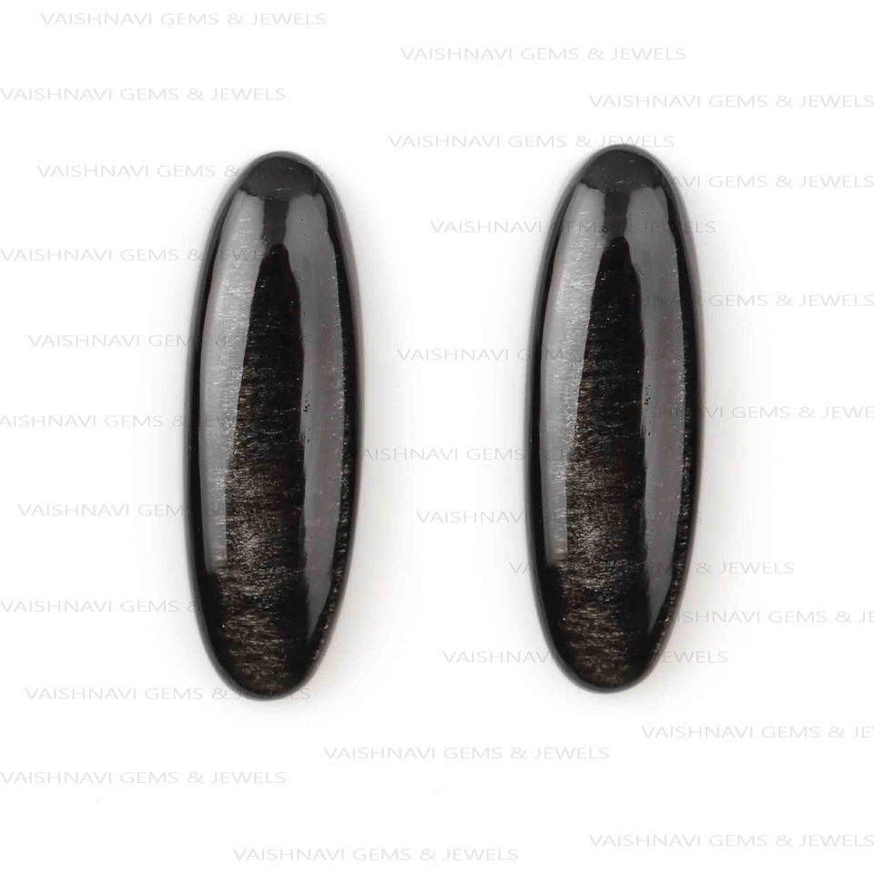 Top Grade Natural Silver Sheen Obsidian 10x30mm Long Oval Flat Back Calibrated Cabochon Loose Gemstone Jewelry Making Supplier