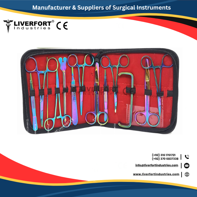 Top Grade Stainless Steel 5Pcs Gift, Learning Surgical Suture Kit, Color B.P Handle Forceps Scissors Medical Suture practice Set