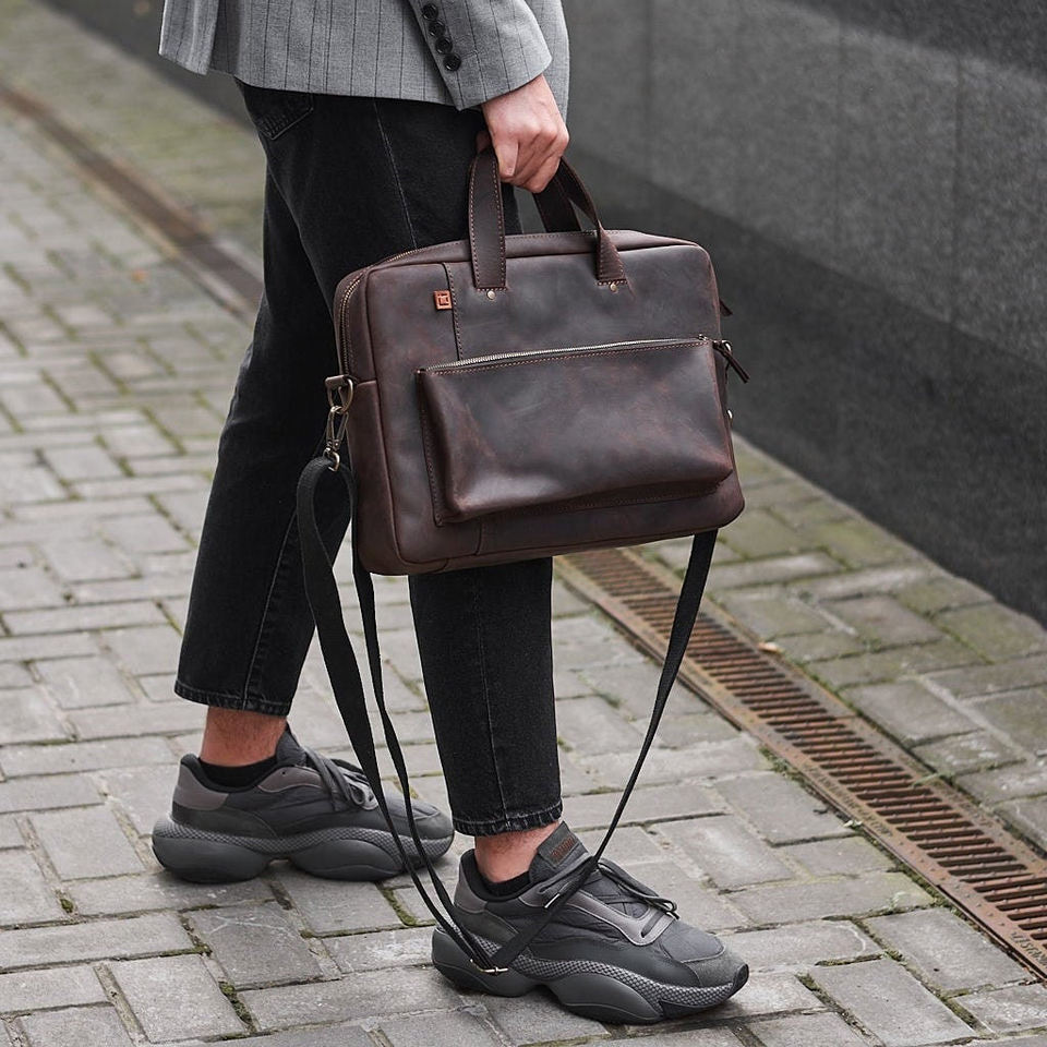Top Grain Leather Men Laptop Bag OEM Factory Direct Wholesale Briefcase Business Travel Messenger Shoulder Tote LPG-0275
