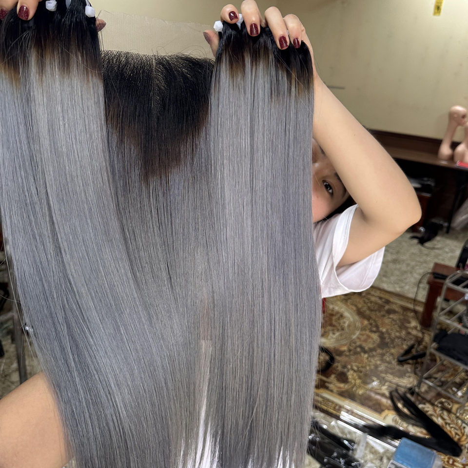 Top Grey Color Weft Hair Bundles and Lace Closure HD Transparent Lace for Human Hair Extensions Wigs Human Hair Vendors