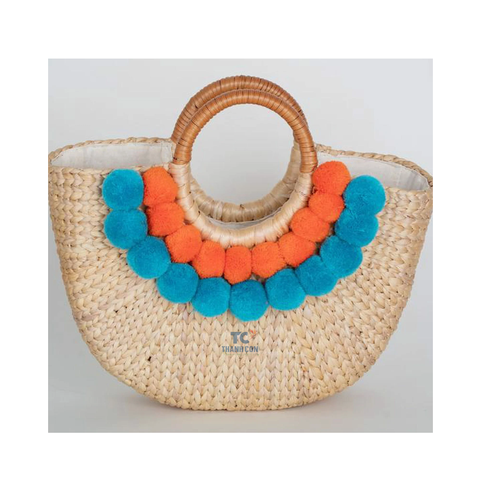 Top Handwoven Straw Water Hyacinth Bag With Luxury Leather Strap, Vintage Market Wicker Tote Bag Wholesale