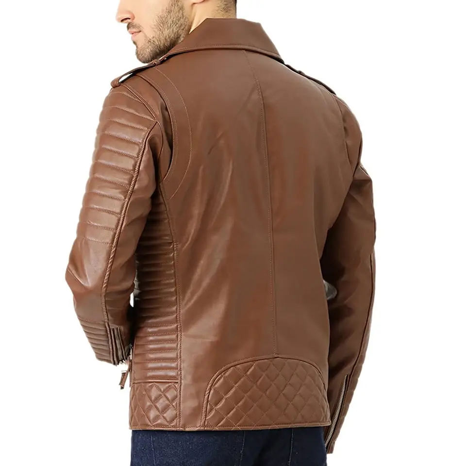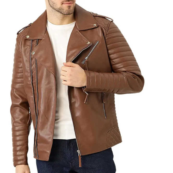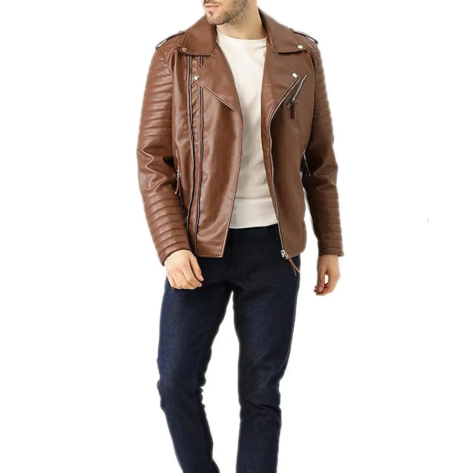 Top Hot Sale Men's Premium Quality Stylish Biker Style Stand Collar Leather Jacket Winter Lightweight Warm Leather Jackets Men