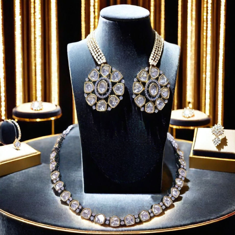 Top Indian AD CZ Necklace Set Charming S925 Sterling Silver High-end Jewelry Fashion Women's Laser Onyx Earrings Party Gift