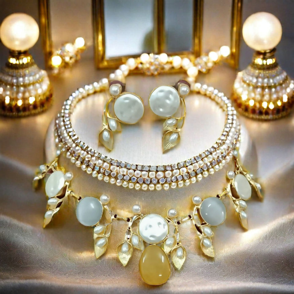 Top Indian Manufacturer Premium Quality Elegant Multi Color Stone Pearl Necklace Earing Set Inspired Fashion Jewelry for Girl