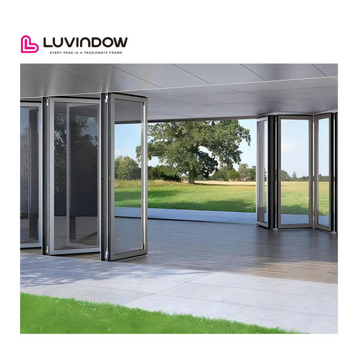 Top Manufacturer Aluminum Folding Doors Large View Double Laminated Glass Balcony Foldable Exterior Doors