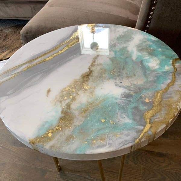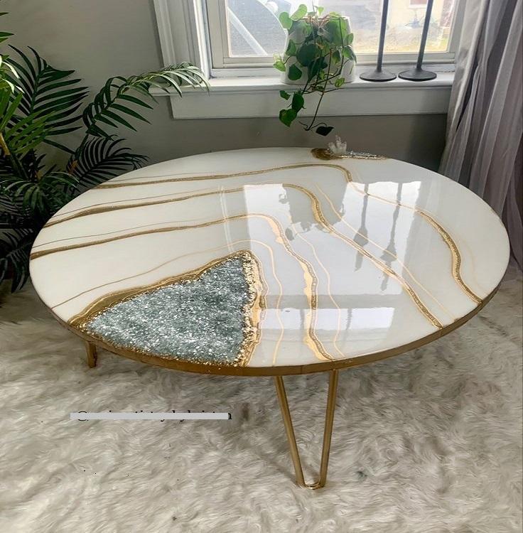 Luxury Modern Eco-Friendly Resin Solid Wood Coffee Table with Epoxy Art Design for Living Room Furniture
