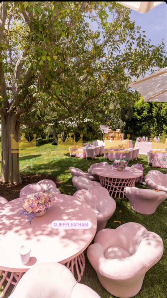Top Marketplace Pink Party Set Rattan Table and Chairs for Outdoor Birthday Parties for Kids and Children
