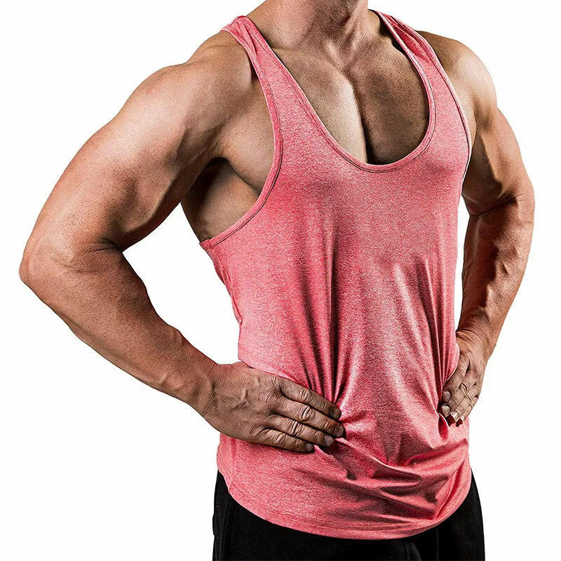 Top Men's Gym Singlet Stringer Muscle Fit Vintage Style Anti-shrink Beading Spandex/Polyester Custom Design Fitness Tank Top