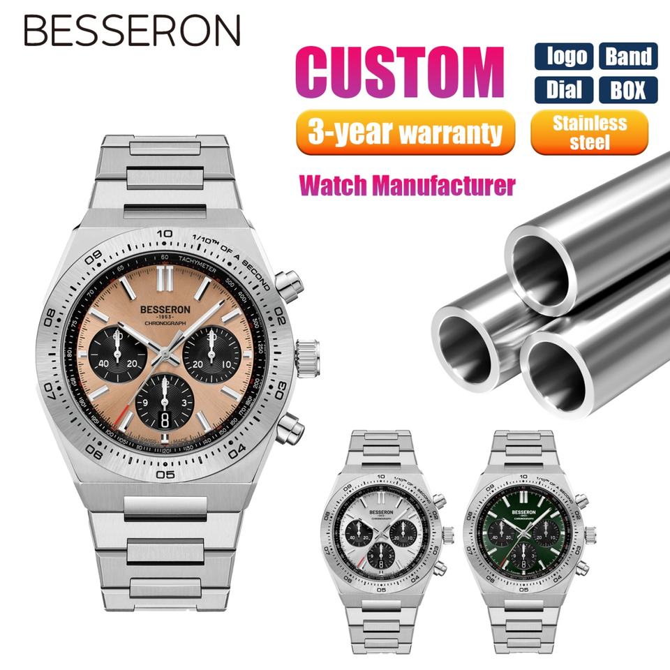 Top Men's Fashion Quartz Sports Watch Luxury VK63 with Waterproof Perpetual Calendar 42mm Classic Stainless Steel Leather Band