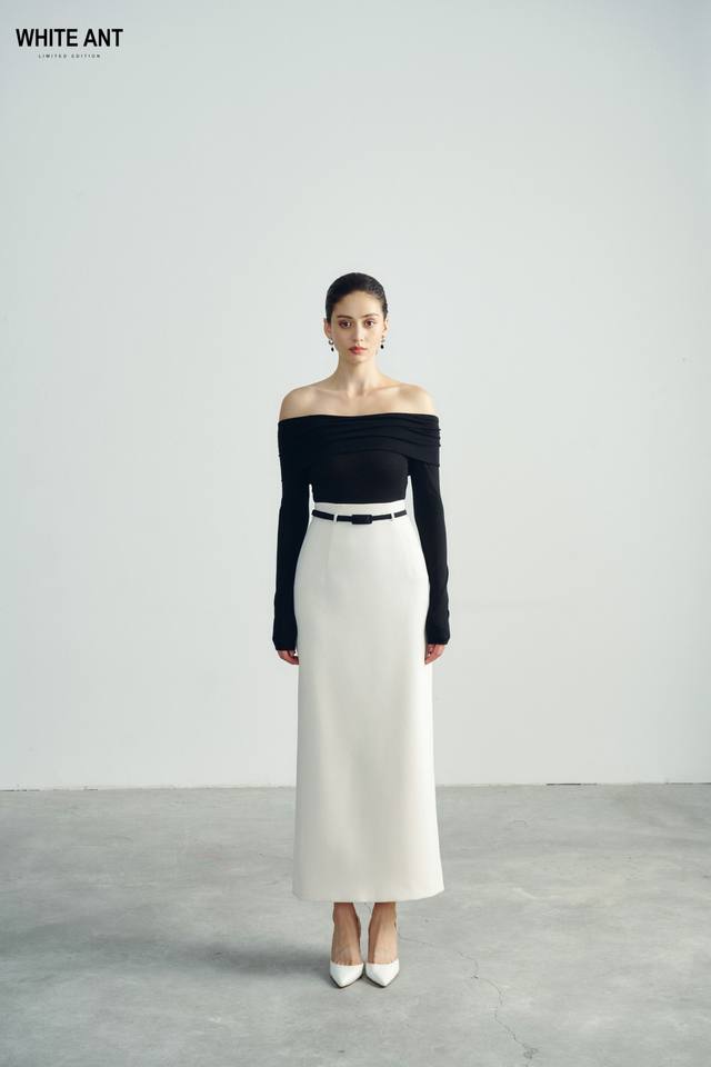Top New Arrival Women's Skirts Rayon Spandex Woven Fabric Luxury ADELA MAXI SKIRT With Belt Manufacturing Company WHITEANT
