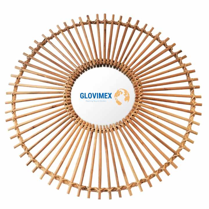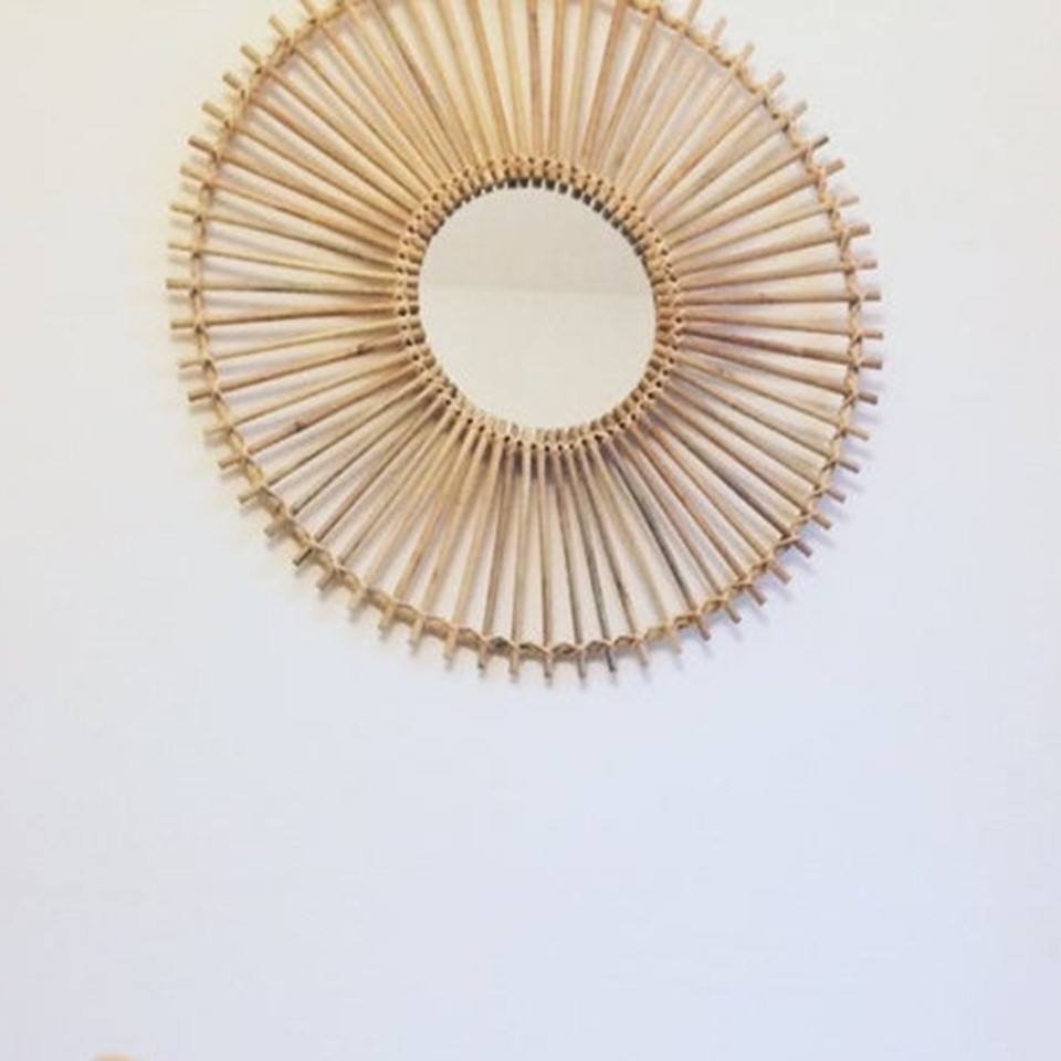 Top New Design Bamboo Rattan Wall Salon Mirror Small Round Mirror Natural Safe Wicker Makeup Vanity Mirror