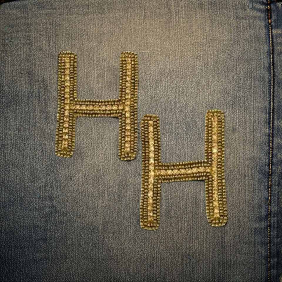 Luxury Handcrafted Initial Beaded Patches Elegant Canvas Fabric Embroidered Appliqued Garment Accessories H Letter PVC Patches