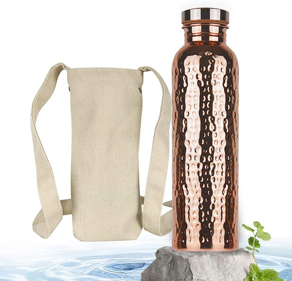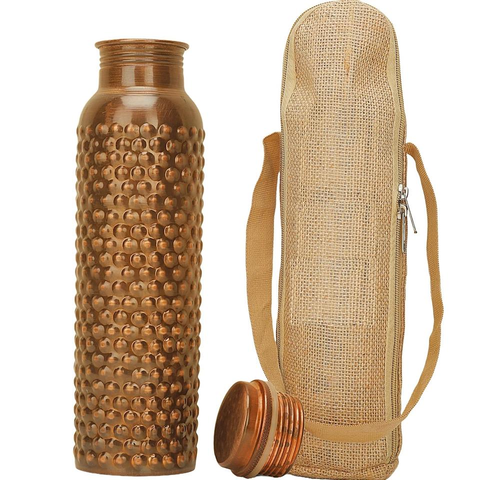 Top Notch Quality Eco-Friendly Copper Bottle Hammered Design Customizable Office Use Jute Carry Bag Applicable Ayurveda Care