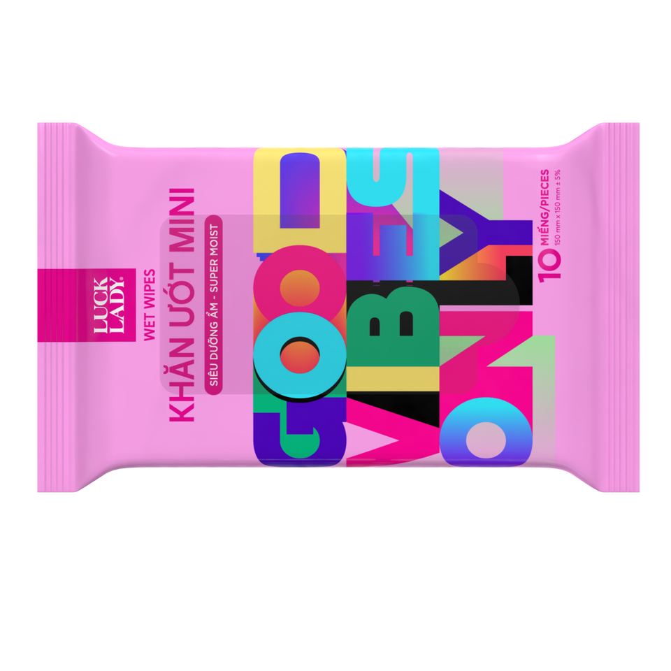 Top Pack of 6 Mini Bags High Quality Luck Lady Feminine Wet Wipes 10 Pieces Fragrance-Free for Skin Care (Goi Trong)