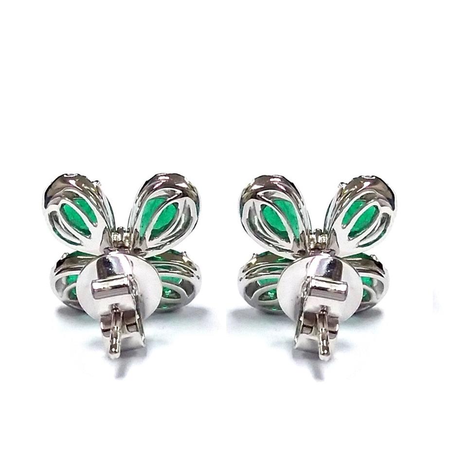 Top Pear Emerald Design Fancy 18K Solid White Gold Rose Gold and Yellow Gold Woman Fine Jewellery Flower Diamond Earrings Stud