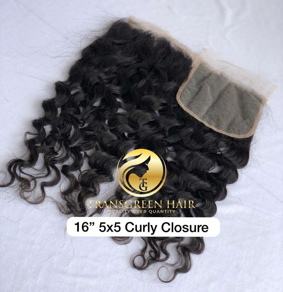 Top Premium Quality 100% Raw Cambodian Indian Temple Remy Virgin 16' Natural Curly 5x5 Hd Lace Closure Wholesale Indian Supplier