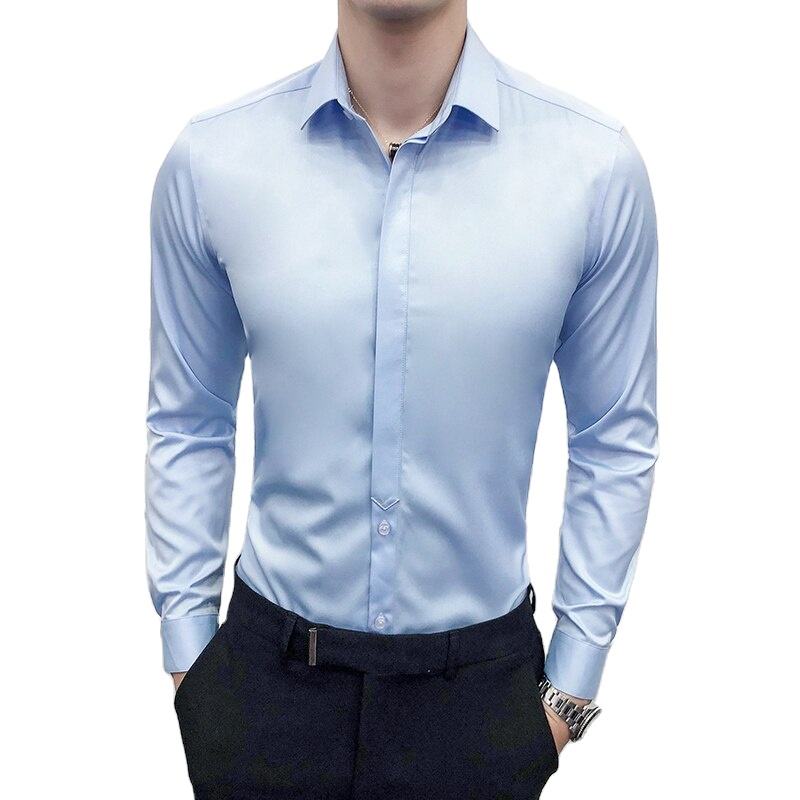 Bigelow Men's Casual Satin Shirt Long-Sleeve Size 6XL Single Breasted Collarless Anti-Wrinkle for Summer and Winter