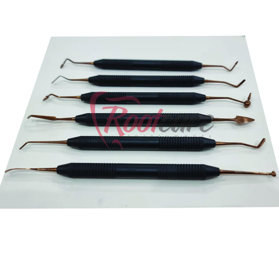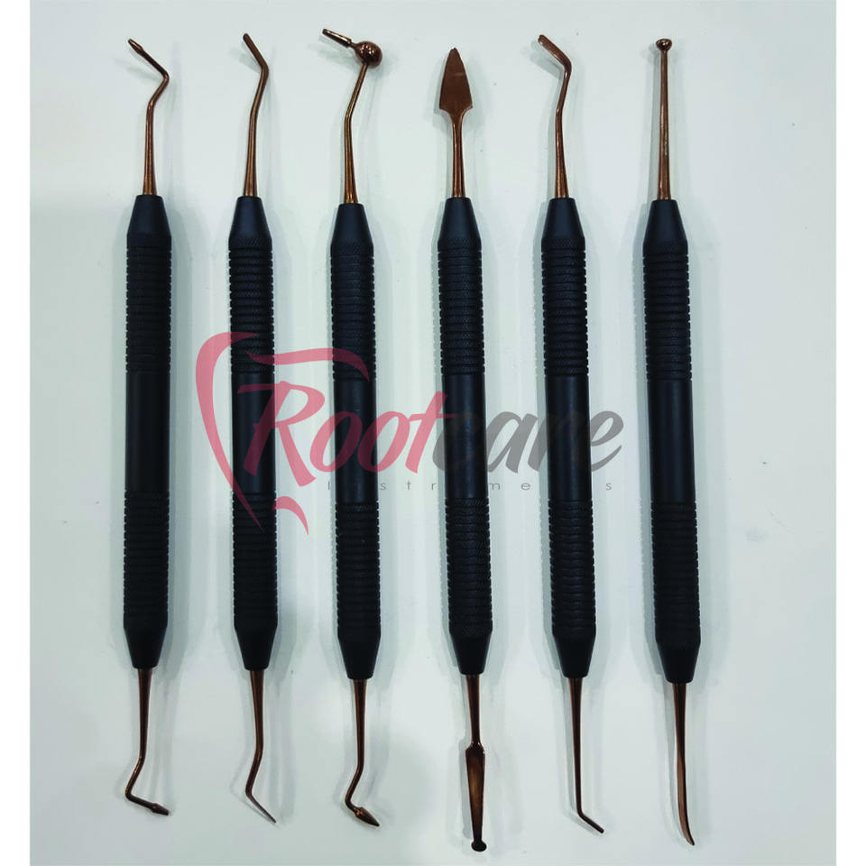 Top Premium Rootcare Black PVD Coated Composite Filling Resin Spatulas Posterior Kit Restorative Dental Set Surgical Instruments