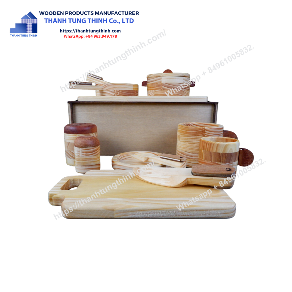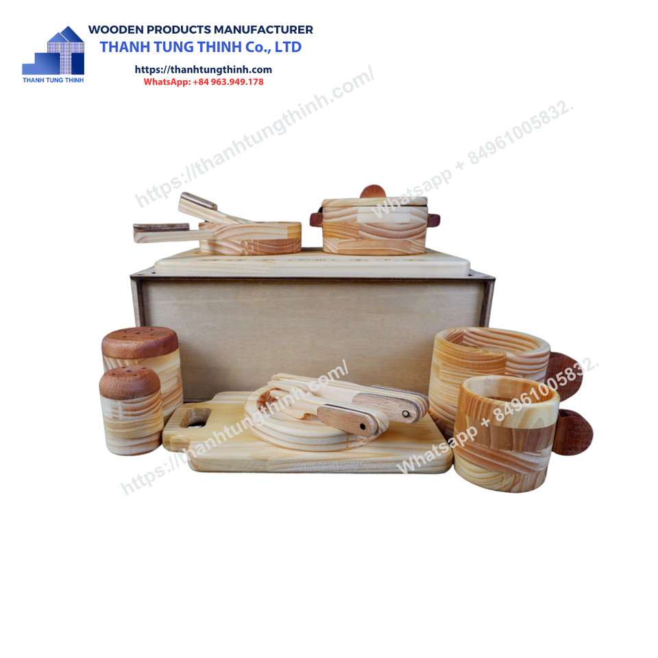 Top Product Custom Wooden Kitchen Utensils Toy Factory Price Made From Vietnam Natural Wood Wholesale