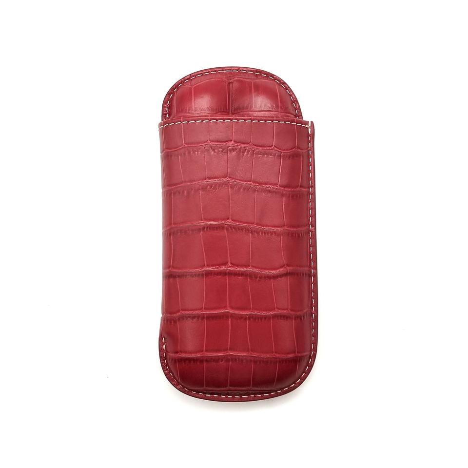 [Top Product] Low MOQ Handmade Castello Luxury Croco Print Italian Leather Classic Vintage Men's Cigar Case Holder Burgundy