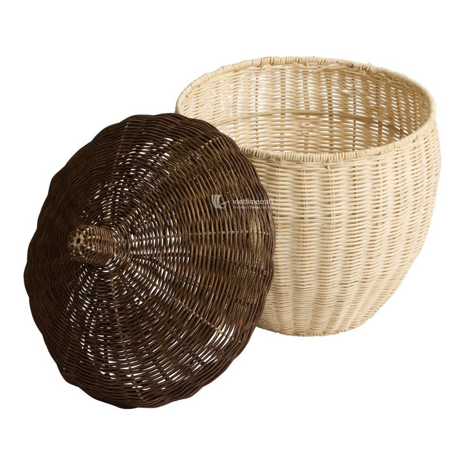 Top Product Natural Two Tone Rattan Acorn Shaped Basket with Lid, Handwoven Storage Laundry Basket for Home Decor Wholesale