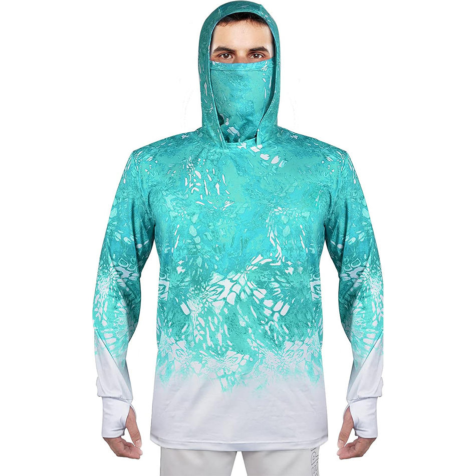 Top Pullover UPF 50+ Men's Fishing Shirts Polyester Quick Dry Outdoor Lightweight Long Sleeve Hooded Mask Fishing Jersey