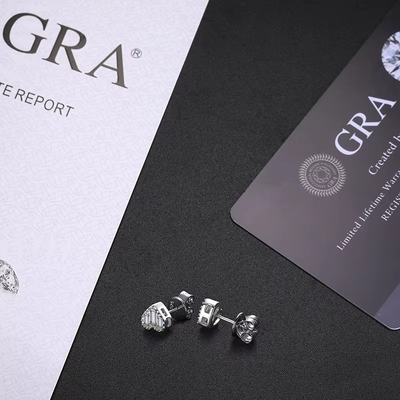 Top Quality 100% 925 Silver Earrings Fashion Classic Heart VVS1 Baguette Moissanite Earring For Women