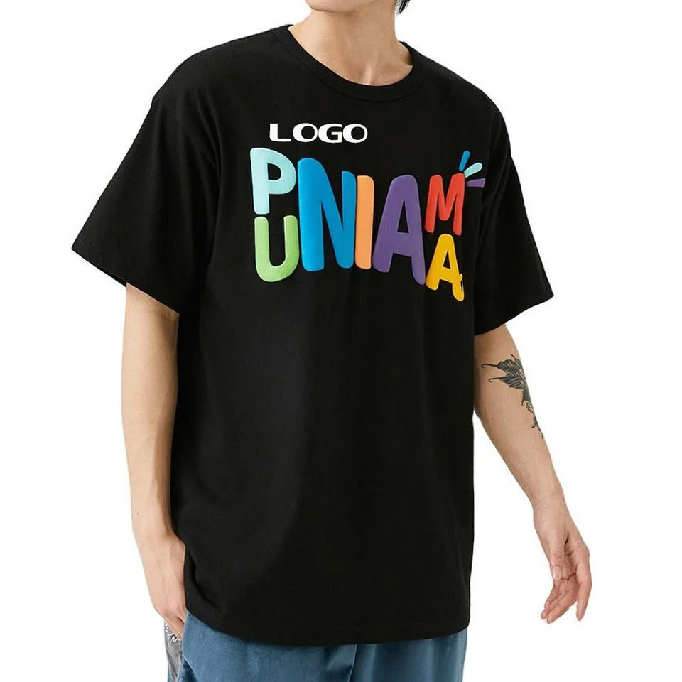 Top Quality 100% Cotton Men T-shirt With Custom Your Brand Logo T Shirt Men Puff Printing T Shirt Men Oversize White